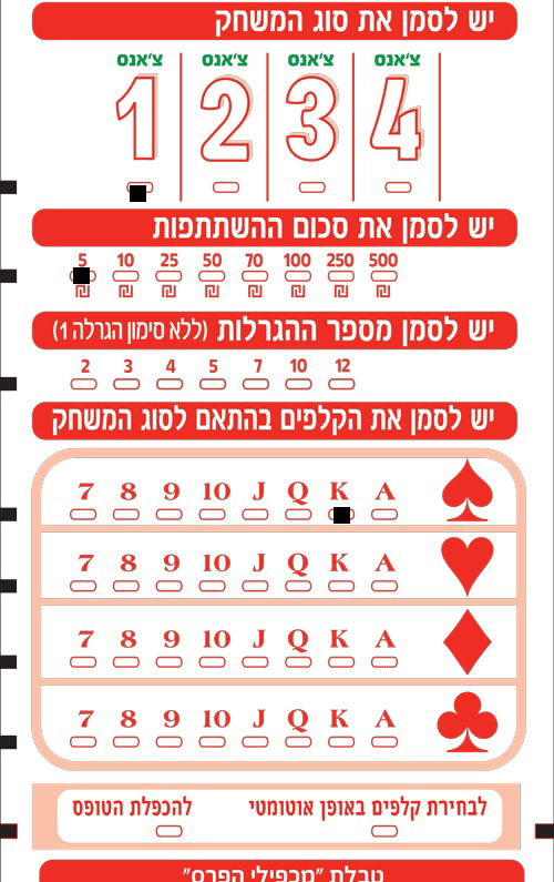 בצ'אנס 1 עליכם  לנחש קלף אחד בלבד. יש לסמן רק קלף אחד בטופס (באחד הטורים), וכן כמה כסף ברצונכם להשקיע בטופס. ניחוש נכון מזכה בסכום ההשקעה כפול 5.